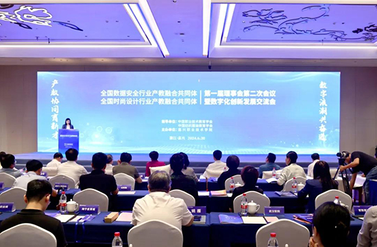 6月30日,全國數據安全、時尚設計行業產教融合共同體第一屆理事會第二次會議暨數字化創新發展交流會在嘉興順利召開。本次會議由中國職業技術教育學會、中國紡織服裝教育學會指導,嘉興職業技術學院主辦,旨在深入學習貫徹黨的二十大精神,全面落實教育部“一體、兩翼、五重點”職業教育改革重大舉措,扎實推進職普融通、產教融合、科教融匯,構建政校行企協同育人新機制,推動高素質人才培養、高水平科技創新、服務區域經濟社會高質量發展。浙江省湖州藝術與設計學校服裝專業部副部長韓憶劼、教研組長陳易青及部分學生代表受邀參加了此次會議。