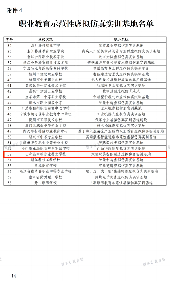 近日,浙江省教育廳辦公室公布了2023年職業(yè)教育一流核心課程等教學相關項目名單,云和縣中等職業(yè)技術學校申報的2個項目成功入選。其中,藍新章老師負責的課程《木制玩具欣賞》獲評2023年職業(yè)教育一流核心課程(線下課程),“木制玩具智能制造虛擬仿真實訓基地”獲評職業(yè)教育示范性虛擬仿真實訓基地。