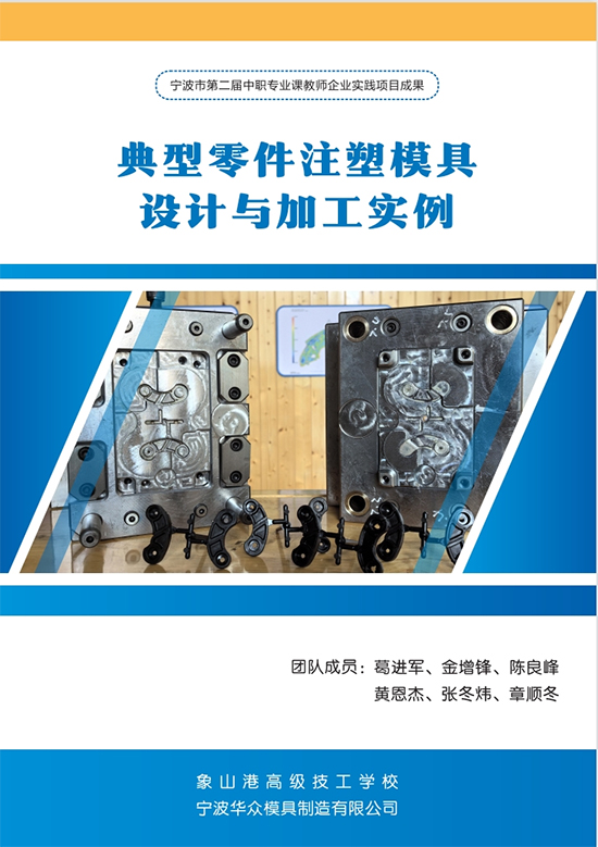 模具設計與制造項目組6位教師在寧波華眾模具制造有限公司頂崗實踐期間,發(fā)現(xiàn)行業(yè)企業(yè)的發(fā)展明顯超前于學校教育,且有相對應的企業(yè)設計標準,涉及好些技術習慣和工藝流程,為了讓該專業(yè)的教學跟上行業(yè)企業(yè)的“趟兒”,老師們萌生了開發(fā)“工作手冊式教材”的念頭,成果轉化階段,在企業(yè)師傅的幫助下,《典型零件注塑模具設計與加工實例》成功出爐。