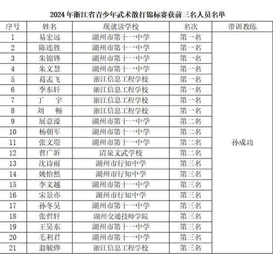 在7月21日至24日舉行的2024年浙江省青少年武術(shù)散打錦標(biāo)賽中,學(xué)校運(yùn)動(dòng)員們與600多名參賽選手進(jìn)行激烈角逐,并取得4金1銅的好成績。