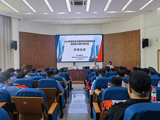 8月20日,2024年湖州市市屬學(xué)校校園保安員業(yè)務(wù)能力提升培訓(xùn)班在浙江省湖州藝術(shù)與設(shè)計(jì)學(xué)校順利開班,90余名安保人員參加本次培訓(xùn)。市教育局校園安全管理處處長(zhǎng)陳金星,干部沈敏華,校培訓(xùn)處副處長(zhǎng)吳佳出席。