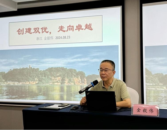 8月23日下午,學(xué)校特邀請湖州市教育局原副局長、湖州職業(yè)技術(shù)學(xué)院原黨委副書記金毅偉開展題為《創(chuàng)建雙優(yōu) 走向卓越》的專題講座。金毅偉圍繞“推進(jìn)雙高迭代發(fā)展創(chuàng)雙優(yōu)、完善現(xiàn)代職教體系創(chuàng)雙優(yōu)、錨定辦學(xué)質(zhì)量提高創(chuàng)雙優(yōu)、勇于改革創(chuàng)新實踐建雙優(yōu)”等四個方面剖析了“雙優(yōu)”項目的核心價值與深遠(yuǎn)意義。