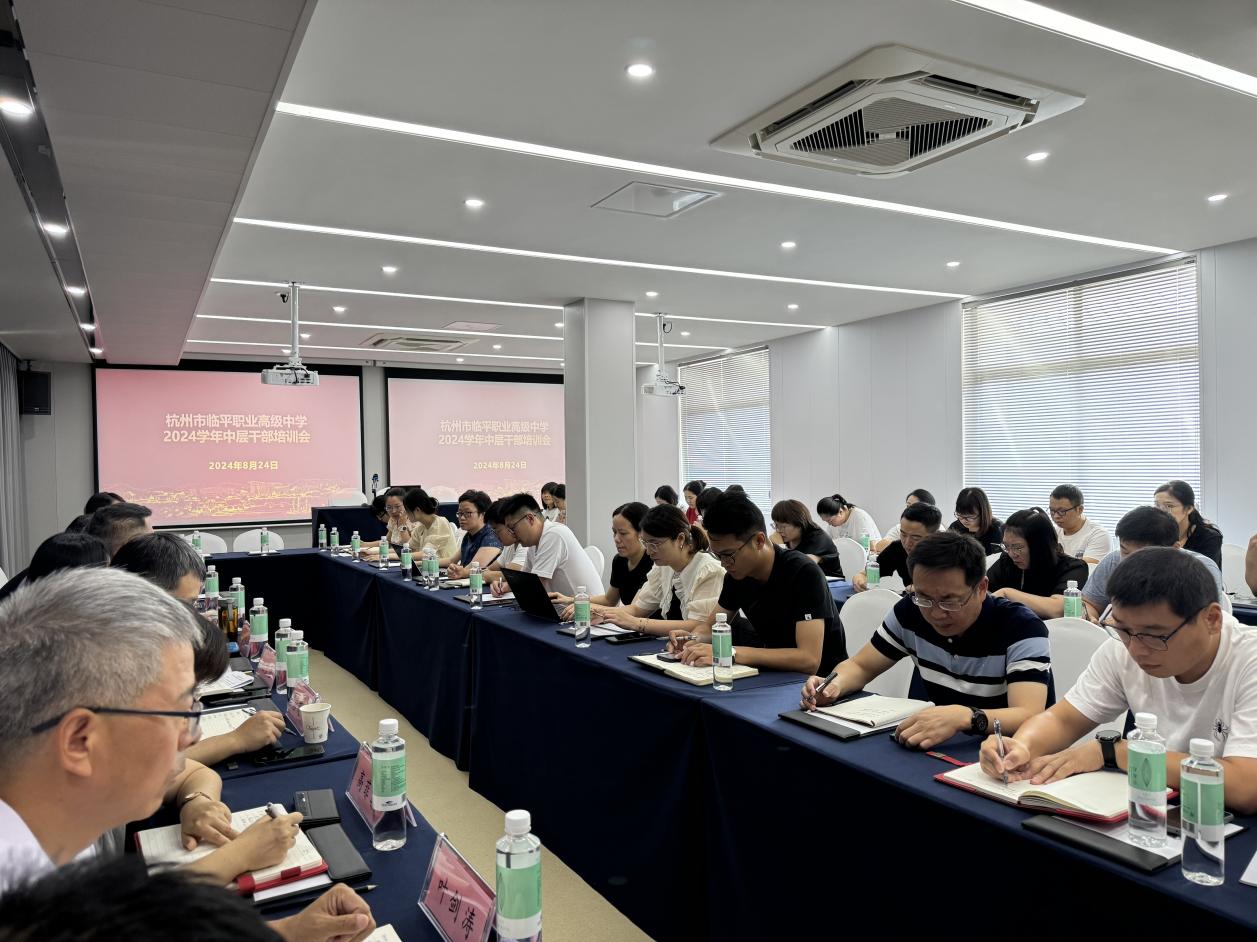 為推動學(xué)校高質(zhì)量發(fā)展,加強(qiáng)學(xué)校干部隊伍建設(shè),提升干部綜合素養(yǎng)和履職能力,8月23日—24日,杭州市臨平職業(yè)高級中學(xué)舉行為期兩天的行政干部培訓(xùn)會。本次會議聚焦“謀好開局篇 走好雙優(yōu)路”奮斗目標(biāo),全體校級領(lǐng)導(dǎo)及中層干部齊聚一堂,通過聆聽專家講座、領(lǐng)導(dǎo)講話、集中匯報等形式交流研討,共繪學(xué)校高質(zhì)量發(fā)展新藍(lán)圖。