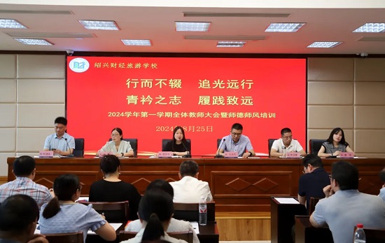 8月25日上午,紹興財經旅游學校召開2024學年第一學期全體教師大會暨師德師風專題培訓會議,會議由校長王決芳主持。