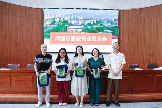 本學期學校有4位教師加入藝校大家庭,自我介紹后,新進教師們接過了校黨委書記唐海佺親手遞出的“入職禮包”,儀式感滿滿。
