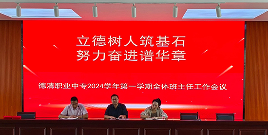 金秋時(shí)節(jié)開(kāi)學(xué)季,砥礪前行共奮進(jìn)。為進(jìn)一步落實(shí)立德樹(shù)人根本任務(wù),確保新學(xué)期班主任工作有序高效開(kāi)展,8月27日下午,德清職業(yè)中專(zhuān)召開(kāi)2024學(xué)年第一學(xué)期全體班主任工作會(huì)議。校黨委委員馬紀(jì)孝、各系政教主任以及全校83個(gè)班級(jí)的班主任參加會(huì)議,會(huì)議由政教處處長(zhǎng)鄧志民主持。