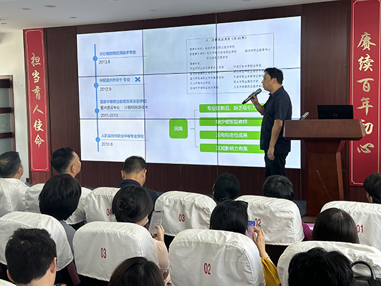 活動(dòng)期間,學(xué)校特邀溫州市職業(yè)中等專業(yè)學(xué)校副校長(zhǎng)、浙江省“萬人計(jì)劃”教學(xué)名師、浙江省特級(jí)教師、浙江工匠、浙江省春蠶獎(jiǎng)、全國(guó)工業(yè)和信息化職業(yè)教育教學(xué)指導(dǎo)委員會(huì)委員、正高級(jí)講師、高級(jí)技師王恒心帶來主題為“物聯(lián)十年:我與我的團(tuán)隊(duì)”的專題講座。