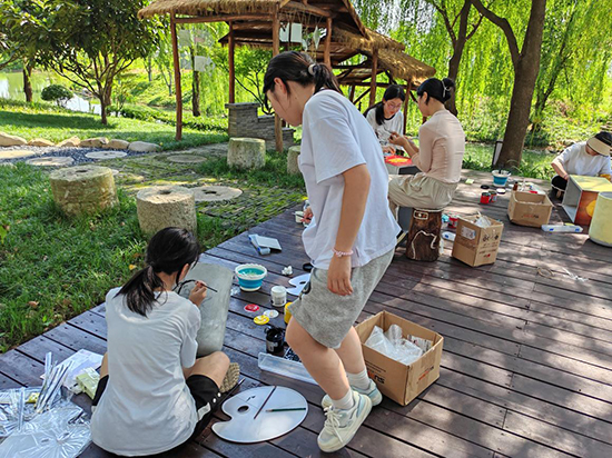 充分準(zhǔn)備后,同學(xué)們開(kāi)始花盆彩繪的實(shí)踐創(chuàng)作。為提高效率,他們分成工作小組,各自在村中找了一處?kù)o謐的角落進(jìn)行繪制。打形、調(diào)色、上色、勾線、落款……“藝小青”青春的身影與藍(lán)天白云、綠樹(shù)紅花交相輝映,成為伍浦村一道亮眼的風(fēng)景線。