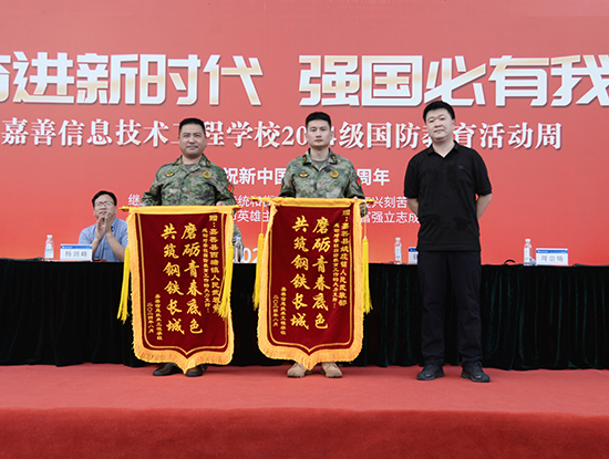 嘉善縣人武部部長張立峰,嘉善縣人武部副部長徐海亮,嘉善縣教育局黨組成員、副局長楊劍峰,姚莊鎮人武部部長錢加超,西塘鎮人武部部長吳兵強,嘉善縣教育局職成教科科長周崇旸,嘉善縣巡特警大隊黑鷹突擊隊副隊長、特勤中隊長阮志豪,學校黨總支書記徐晉謙,學校黨總支副書記、校長邱雨馨,學校黨總支副書記周建平出席活動。