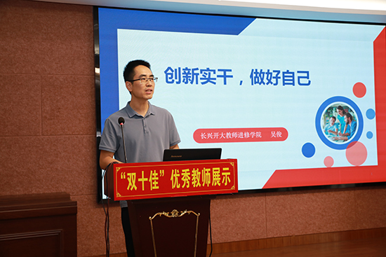 8月29日上午,學院開展第六屆“雙十佳”優秀教師展示活動,副書記孫甫永主持,副院長周金金、院長金曙分組點評。