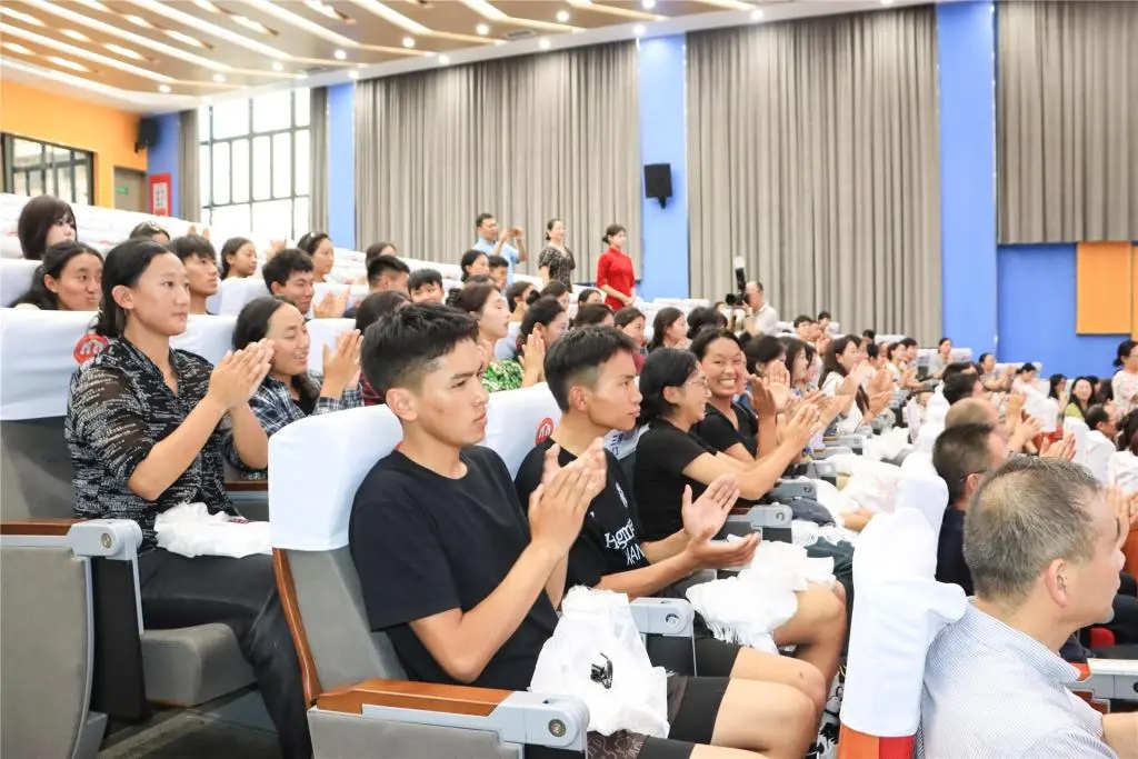 實(shí)中附屬幼兒園報(bào)告廳內(nèi),浙甘班學(xué)生欣賞了實(shí)中學(xué)子帶來的精彩表演,場(chǎng)內(nèi)不時(shí)響起熱烈的掌聲。活動(dòng)中,浙甘班的各任課教師向甘孜學(xué)生遞上“親情卡”,上面寫有教師姓名及電話,方便學(xué)生有問題隨時(shí)聯(lián)系。甘孜學(xué)生也向?qū)嵵行nI(lǐng)導(dǎo)及任課教師獻(xiàn)上潔白的哈達(dá),傳遞真誠(chéng)的心意。