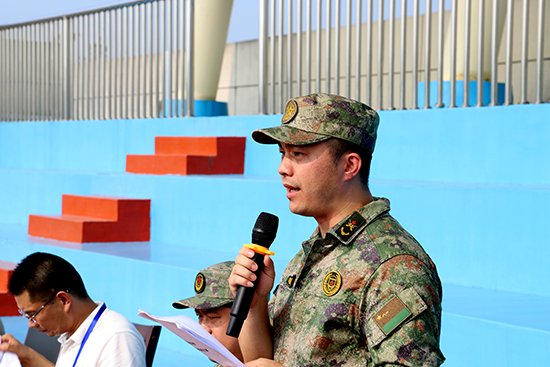 王堅(jiān)龍副部長(zhǎng)代表人武部宣讀軍訓(xùn)教官名單,他對(duì)同學(xué)們提出三點(diǎn)要求:第一,要求同學(xué)們把自己當(dāng)作一名軍人。第二,要求同學(xué)們?cè)谲娪?xùn)中學(xué)會(huì)關(guān)愛(ài)他人,關(guān)心集體。第三,希望同學(xué)們?cè)谟?xùn)練后要認(rèn)真總結(jié)。他也代表全體教官在全校師生面前做出承諾會(huì)在全體訓(xùn)練中嚴(yán)密組織,精心指導(dǎo),盡職盡責(zé),以飽滿(mǎn)的精神狀態(tài)投入到訓(xùn)練中,出色完成軍訓(xùn)任務(wù)。