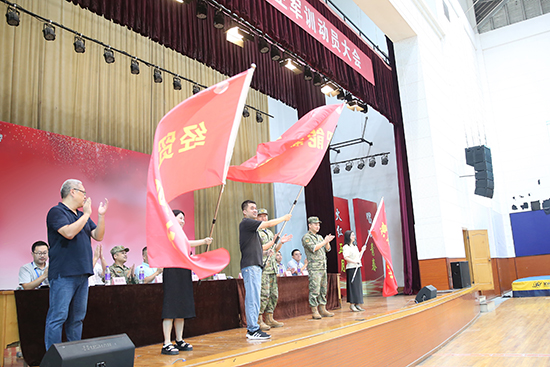 梁天軍、喻省喜、潘強(qiáng)分別向?qū)W校智能制造系、烹飪旅游系、經(jīng)貿(mào)信息系授予夏令營(yíng)旗幟。