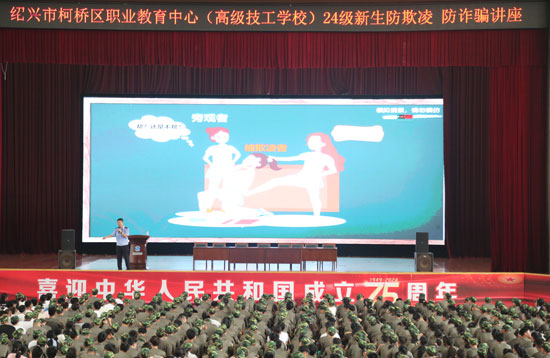 為了加強(qiáng)校園安全管理,弘揚(yáng)正能量,保障學(xué)生的身心健康,營造文明、平安、和諧的育人環(huán)境,日前,紹興市柯橋區(qū)職業(yè)教育中心針對14級新生開展了預(yù)防校園欺凌專題講座,由安昌派出所民警(學(xué)校法制副校長)丁梁烽警官主講。