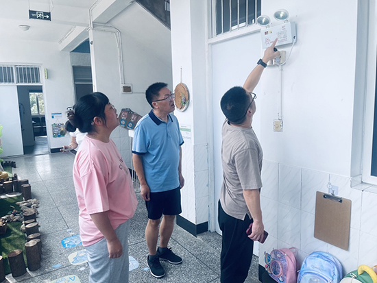 在楓橋鎮(zhèn)旺妙幼兒園。中、大混齡班的幼兒們正在操場由老師帶領(lǐng)下開心地做操。在園長駱紅環(huán)陪同下,郭燁等人查看三層園舍、環(huán)境裝飾,問詢新進(jìn)幼兒情況。整個園內(nèi)設(shè)施完備、環(huán)境整潔,勞動實踐園地內(nèi)郁郁蔥蔥。只是一樓樓梯間有雜物堆放,提醒要及時搬離。