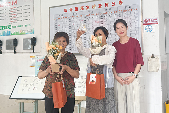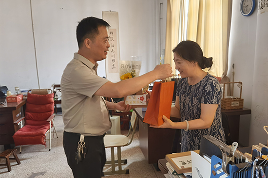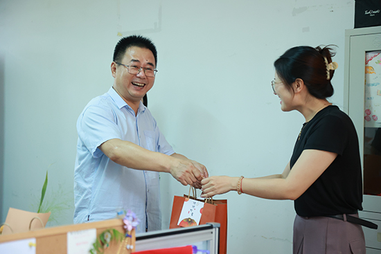 活動中,校領(lǐng)導(dǎo)、校工會委員和各分工會干部分組來到教學(xué)樓、實訓(xùn)室、體育館、行政樓和食堂的每一間辦公室,將鮮花和暖心節(jié)日禮物送至每一位教師、職工和后勤人員手中。“您辛苦了,感謝您!”“祝您教師節(jié)快樂!”一句句暖心的祝福正如一股股清泉感動著每一位教職工的心間;“校長好!”“也祝您節(jié)日快樂!”一聲聲熱情洋溢的回應(yīng)激起一陣陣歡聲笑語,大家互送祝福,共同慶祝屬于自己的節(jié)日。