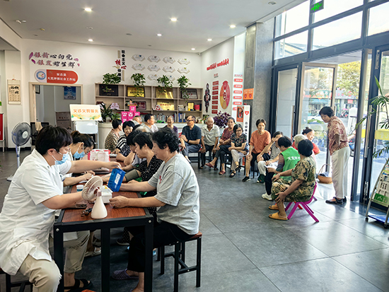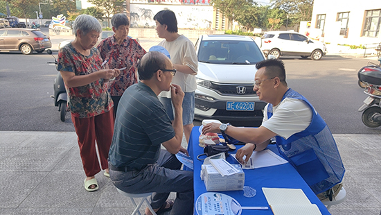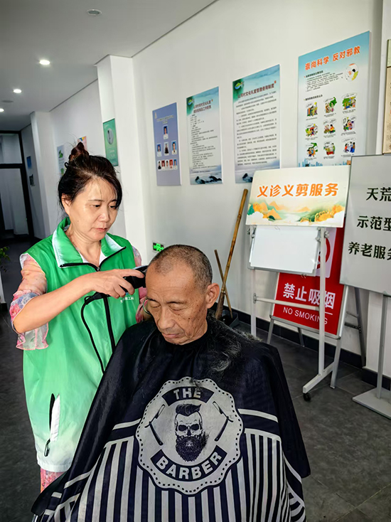 活動現(xiàn)場,義診醫(yī)生為前來就診的村民提供免費量血壓、測血糖檢測等,并耐心解答健康咨詢問題,從飲食、運動、用藥的注意事項等方面給予合理建議。來自復(fù)大口腔的牙醫(yī)從牙齒保護(hù)等方面入手,為大家?guī)韺I(yè)的牙科知識講解,耐心細(xì)致解答群眾問題,指導(dǎo)大家如何保護(hù)牙齒、預(yù)防口腔疾病。幸福鄰里的志愿者們還為社區(qū)老年人提供免費義剪服務(wù),志愿者先對理發(fā)工具進(jìn)行消毒,然后,將一張圍布披在“顧客”的肩膀上。在一梳一剪、一洗一吹之間,原本蓬亂的頭發(fā)變得整潔利落。