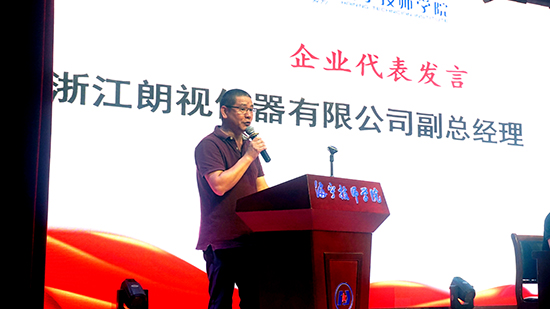 企業(yè)代表浙江朗視儀器有限公司副總經(jīng)理陳家桃以“回饋社會、支持教育”的初心為起點,期待與學(xué)校加強(qiáng)合作,共同探索校企合作的新模式、新路徑,同時鼓舞海技學(xué)子珍惜在校時光,努力學(xué)習(xí)專業(yè)知識,提升綜合素質(zhì),為將來走上社會、服務(wù)國家打下堅實基礎(chǔ)。