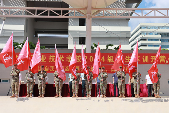 軍訓(xùn)開營儀式上,教官代表們?yōu)槿w新生帶來了精彩的軍事技能展示,他們整齊劃一的動作、鏗鏘有力的口令贏得了在場師生的陣陣掌聲。隨后,校級領(lǐng)導(dǎo)為各班級授軍訓(xùn)營連旗,鮮艷的旗幟在晨風(fēng)中飄揚,象征著新生們即將開啟為期一周的軍訓(xùn)之旅。