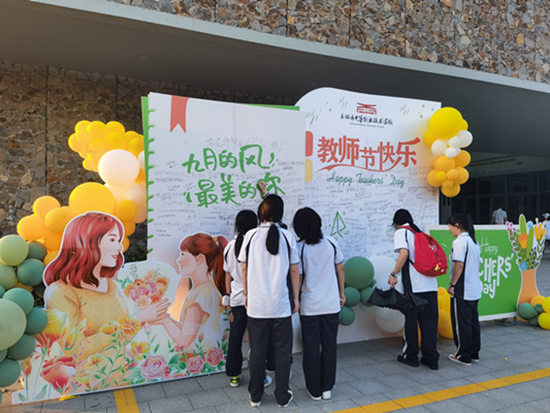 活動期間,學校還在圖信樓前布置了教師節(jié)祝福牌,鼓勵學生在上面書寫對老師的祝福和感謝之詞,希望通過這樣的方式,展現(xiàn)學生們對老師的真摯情感,讓老師們感受到學生們的關(guān)愛和尊重。
