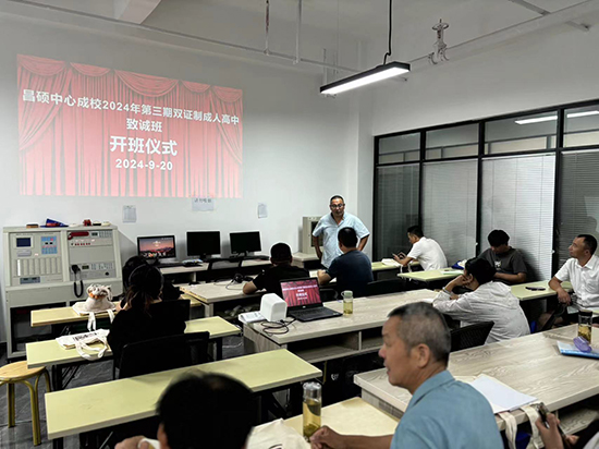 開班儀式上,昌碩成校副校長張虎介紹,本期成人高中班延續學校一貫的教育理念——以學員為中心,課程體系靈活多樣,涵蓋語文、數學、思想道德與法律基礎、社會科學等核心科目,同時也增加了實用技能和人文素養類課程,顧名思義為“雙證制”,旨在全面提升學員綜合素質。此外,考慮到成人學員的工作和家庭實際情況,課程安排采取線上線下相結合的方式,確保每個人都能根據自身情況進行高效學習。