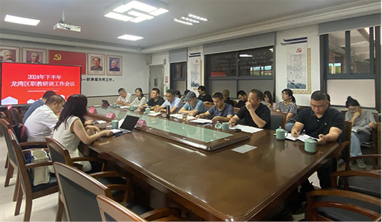 9月14日,2024年下半年區職教研訓工作會議在龍灣區職業技術學校瑤溪校區順利召開,龍灣區教師發展中心主任鄭忠勇,職教研訓科科長何衛標和研訓員陳育文蒞臨指導,布置本學期的研訓工作,學校行政班子及各學科教研組長、負責人出席本次會議。會議由何衛標主持。