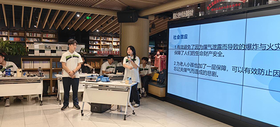 創(chuàng)新團(tuán)隊的同學(xué)們分別介紹了智慧農(nóng)業(yè)自動控溫裝置、預(yù)警梯、智能煤氣報警裝置等等,都是從生活中尋找到的靈感,在介紹完項目后,孩子們稚嫩的小臉充滿了好奇心與求知欲,紛紛雀躍著參與體驗。