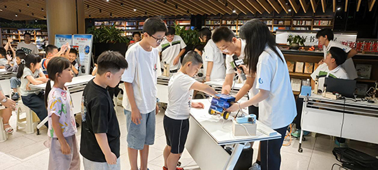 同時科技創(chuàng)新也致力于服務(wù)社會,9月22日下午,創(chuàng)新團(tuán)隊就帶著自己創(chuàng)作的作品進(jìn)入書城,對小朋友們開展了一場不同的頭腦風(fēng)暴。