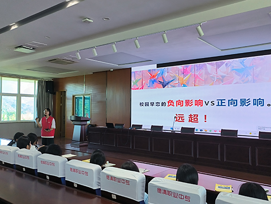 活動(dòng)開始,星辰社工徐玉老師用小游戲激發(fā)學(xué)生興趣和參與積極性,同時(shí)體驗(yàn)意外驚喜帶來的感覺。接著,徐老師以問題引導(dǎo)同學(xué)們思考“來到德清職業(yè)中專是人生拐點(diǎn),選擇走什么樣的路?”及“如果意想不到地遇到讓自己心動(dòng)的人要怎么辦?”與同學(xué)們共同探討校園早戀的影響,并科普“我從哪里來?”及青春期自我保護(hù)的知識(shí),明確青少年推遲首次性行為的重要性。最后,徐老師與大家分享了學(xué)生時(shí)代的學(xué)習(xí)成長內(nèi)容,制定SMART目標(biāo),講述優(yōu)秀學(xué)長故事,帶著同學(xué)們一起從中尋找“新學(xué)期心能量”,學(xué)會(huì)為自己和他人負(fù)責(zé),為守護(hù)青春安全前行做努力。