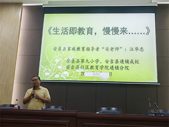 9月19日晚6時,安吉縣社區(qū)教育學院遞鋪分院在安吉縣第九小學報告廳開展夜間家庭教育公益講座,講座由安吉縣社區(qū)教育學院孝源學習中心負責人汪華忠授課,來自安吉縣第九小學一年級和四年級的482位學生家長到場聽課。本次講座是學校“新時代市民夜校”送教上門的系列課程之一。