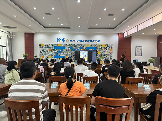 會議第二個階段“家校共育”在圖書館閱覽室召開,家校雙方齊聚一堂,開展面對面交流。