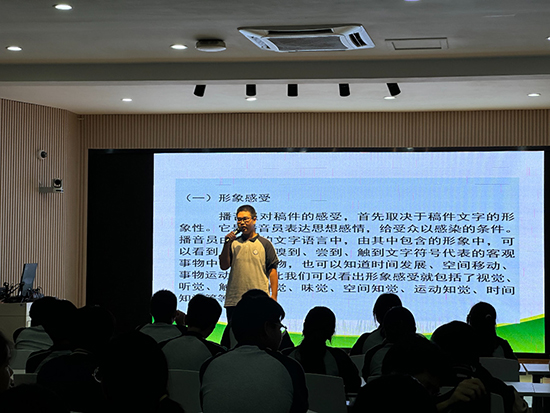 本次課程采用靈活的走班制教學,每周三定期舉行,預計整個學期將帶來18至20次精彩紛呈的學習體驗,讓學生在輕松愉快的氛圍中不斷成長。首講由朗讀者語言藝術中心汪李濤老師擔綱。汪老師從形象感受、聽覺感受、視覺感受、時空感受多個角度入手,用生動有趣的例子和深入淺出地講解,讓學生們感受到了語言的無窮魅力。