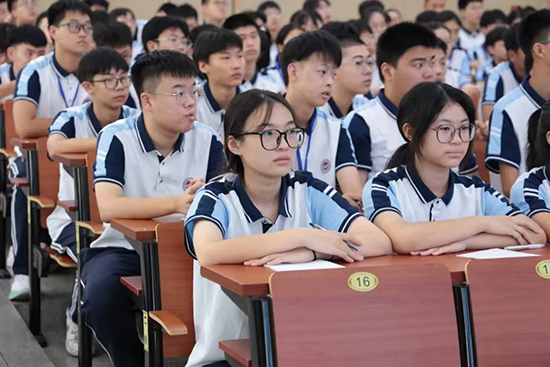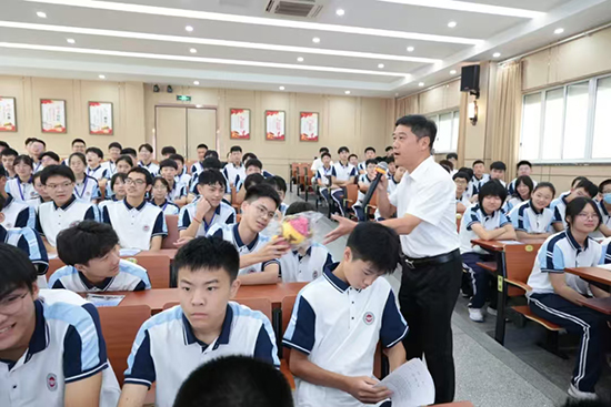 走進建校門:“在建校的發(fā)展歷程中,前后共走過六扇門”,龔磊以校門變遷為切入點,分享學校一路由嘉興縣十八中學走來,幾易校名、幾度搬遷,不斷發(fā)展壯大的過程,為1031名新同學們走進建校門引路領航。