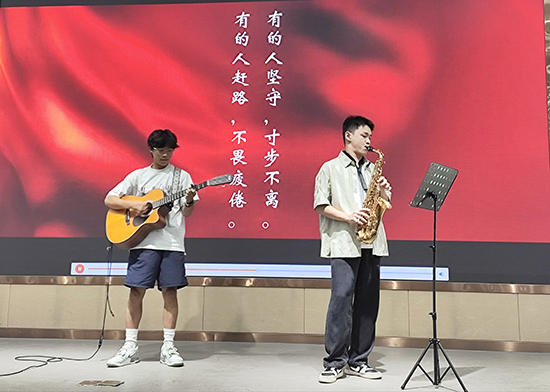 同樣來到活動現場的還有24屆畢業生周志豪同學,他與新入職的時銘遠老師并肩,以一曲深情激昂的樂器合奏,引領眾人心靈啟航。師生默契的配合詮釋了教育的真諦:不僅僅是知識的傳授,更是情感的交流、心靈的觸碰和靈魂的喚醒。