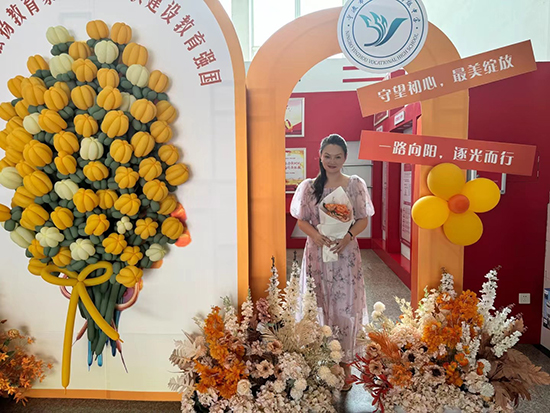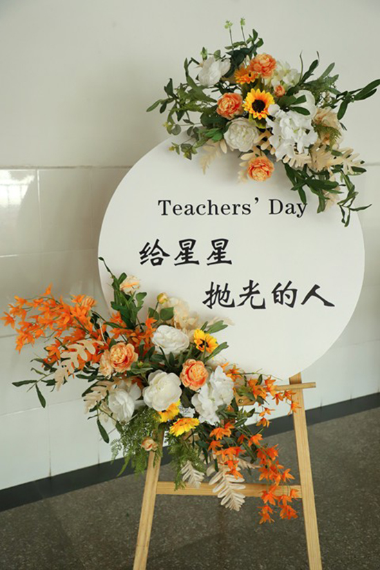 教師節(jié)前夕,工會(huì)就組織人員緊鑼密鼓地布置兩個(gè)打卡處“一路向陽(yáng)”主題墻和“給星星拋光的人”主題卡牌。打卡處裝飾以橙色與綠色花束,突出了第四十個(gè)教師節(jié)“大力弘揚(yáng)教育家精神,加快建設(shè)教育強(qiáng)國(guó)”的主題及“潤(rùn)澤每一個(gè)生命的適性成長(zhǎng)”的龍山精神,美麗溫馨,儀式感滿滿。“咔嚓咔嚓”拍照打卡的聲音不絕于耳。