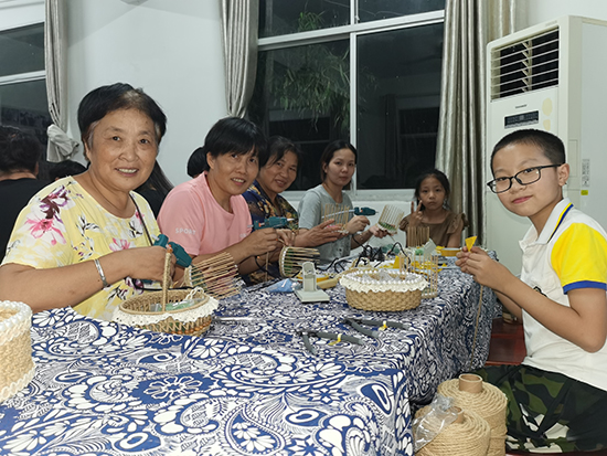 創意手工編織班里,鋪在桌面上的一塊塊青花臺布將教室里的藝術氛圍直接拉滿,學員們圍坐在桌子周圍專心地編織著茶葉罐頭。“這門課程我太喜歡了!你看,我按照老師教我們的方法,用麻繩、花邊、珠子、流蘇等材料制作了一個茶葉罐,漂不漂亮?”學員范雅紅舉著親手做的茶葉罐高興地說,“這次創意手工課程還安排了筆筒、收納筐、籃子、花籃等手工藝品的制作,我們對后面的培訓活動充滿了期待。”