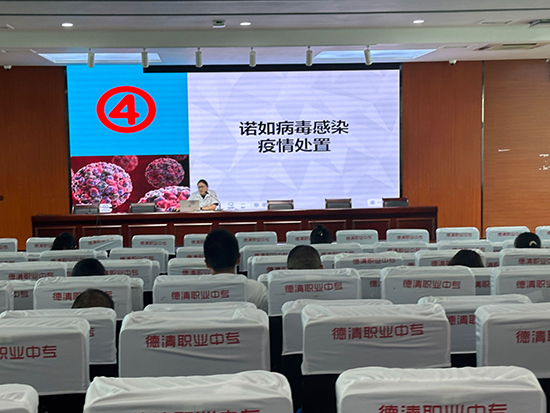 為筑牢校園健康安全防線,提升全體教職工對傳染病防控的認知水平及消毒作業的專業能力,德清職業中專于9月23日舉行傳染病防控與消毒知識專題講座。此次培訓面向全校各班級班主任、食堂工作人員、宿舍管理人員、安保團隊、物業及保潔等人員,旨在構建全方位、多層次的校園防護網。