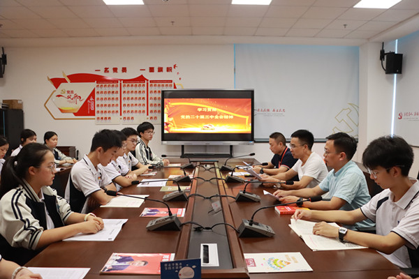 活動中,第一黨支部書記汪光岳老師、第三黨支部書記王金偉老師和黨務辦主任蔡其標老師共同帶領同學們深入學習黨的二十屆三中全會有關精神,三位老師的領學讓學生對黨和國家的最新理論成果與政策導向有了更深的理解,在他們的心中種下了愛國情懷與責任擔當的種子。