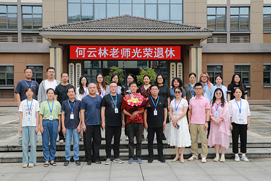 榮退儀式上大家集中觀看了何云林老師教育生涯的回顧短片,周立軍為何云林頒發了退休證、贈送“榮休紀念”牌匾和鮮花。與會老師紛紛發言,表達對何老師的歡送離別之情,大家回憶了與何老師共事的點點滴滴并對何老師送出了美好的祝愿,并在一樓廣場集體合影留念。