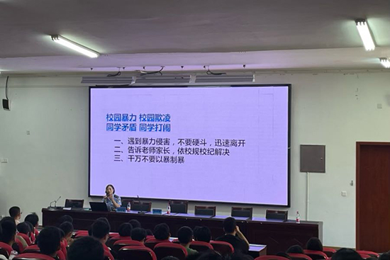 在談到校園暴力時,謝聰聰警官強調(diào),面對校園暴力,首先要保持冷靜,及時向老師和家長報告情況,必要時可以報警處理。她還教授了學(xué)生們一些基本的自我保護技巧,以應(yīng)對突發(fā)情況。謝聰聰警官則通過視頻資料,讓學(xué)生們了解校園暴力的嚴重后果,呼吁大家共同抵制校園暴力,營造和諧校園環(huán)境。