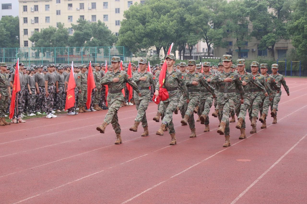 在雄壯的《歌唱祖國》中,國旗班邁著整齊的步伐,英姿颯爽地走過司令臺、走向升旗臺。在激昂的國歌聲中,開學典禮拉開了序幕。