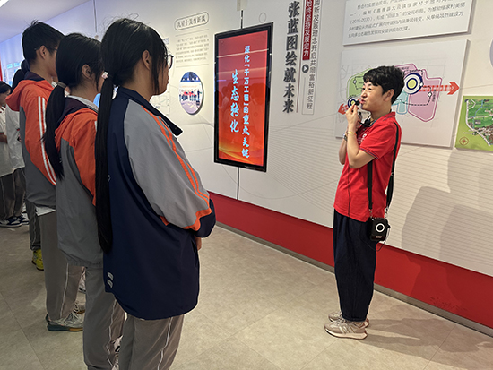在繆家村史館,師生們了解村發展史。村史館展示了繆家村落實2008年習近平同志來村調研要求,將“走在前列、作好示范”作為村莊建設的使命,探索土地流轉“繆家經驗”“飛地抱團”“網格連心”等建設實踐。