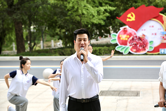 校史館前,一場別開生面的“歌唱祖國”快閃活動激情上演。本次活動由學校團委精心策劃,來自不同學部的各族學生代表和王鑫、周冰依老師一起,載歌載舞地演繹了《今天是你的生日》《歌唱祖國》等經典愛國歌曲。悠揚的歌聲和激昂的旋律在校園內回蕩,不僅展現了學生們對祖國的無限熱愛,也促進了各民族文化的交流與融合,為校園增添了一道亮麗的風景線。