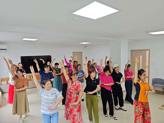 當天,舞蹈室里輕快的音樂回蕩,學員們在倪小玲老師的指導下,翩翩起舞,悠揚的舞姿令人陶醉。課程開始前,倪老師帶領大家進行熱身運動,確保學員們在舞蹈過程中不受損傷。