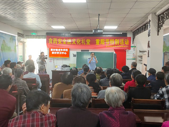 10月11日上午,安吉縣章村鎮(zhèn)章村村文化禮堂內(nèi)人聲鼎沸,熱鬧非凡。一場以“食藥安全教育進(jìn)文化禮堂”為主題的重陽節(jié)特別活動在這里隆重舉行,吸引了92名社區(qū)居民熱情參與。