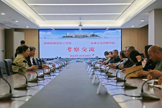 10月10日下午,新疆維吾爾自治區新和縣技工學校一行16人在庫爾班·阿吾提副校長帶隊下,來永康五金技師學院考察交流。永康五金技師學院常務副院長王鐘寶等領導陪同調研。
