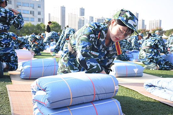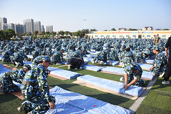 操場(chǎng)上,千人疊軍被活動(dòng)火熱舉行。同學(xué)們將被褥折疊得猶如豆腐塊般規(guī)整,每一處細(xì)節(jié)都透露出對(duì)紀(jì)律的敬畏與尊重。這種嚴(yán)謹(jǐn)自律的軍人作風(fēng),已悄然融入他們?nèi)粘5拿恳粋€(gè)細(xì)節(jié)之中。