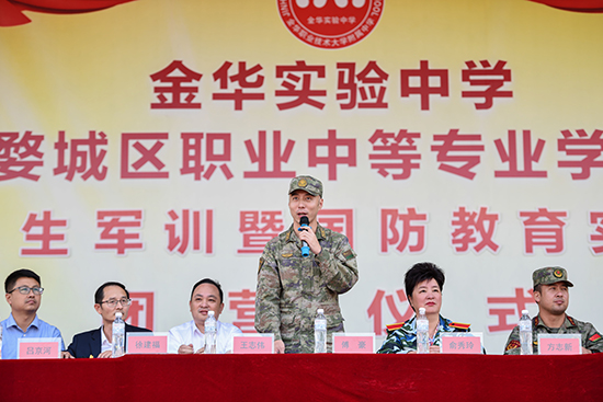 閉營(yíng)儀式上,婺城區(qū)人武部副部長(zhǎng)傅豪對(duì)同學(xué)們?cè)诹嘘?duì)會(huì)操中的出色表現(xiàn)給予了高度贊揚(yáng),并強(qiáng)調(diào)軍訓(xùn)對(duì)于提升每位同學(xué)的國(guó)防素養(yǎng)以及培養(yǎng)愛(ài)黨、愛(ài)國(guó)、愛(ài)軍的深厚情感具有重大意義。希望全體同學(xué)們能夠繼續(xù)弘揚(yáng)愛(ài)國(guó)精神,樹(shù)立遠(yuǎn)大志向,爭(zhēng)做有理想、敢擔(dān)當(dāng)、能吃苦、肯奮斗的新時(shí)代好青年。
