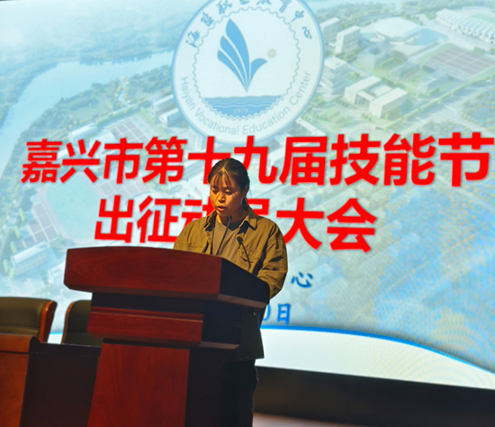 該校參賽學生代表李依婷和蔣佳浩同學分別發言。他們表示,將以飽滿的精神狀態投入日常訓練,珍惜外出拉練機會,力爭在本屆技能節上再創佳績。他們的發言,充滿青春與激情,展現海鹽職教學子的昂揚斗志。