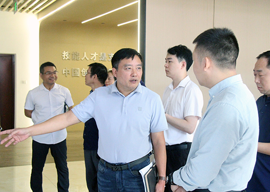 在產教融合大樓,胡贊詳細介紹了學校的辦學特色、校企合作的成功案例、“東遷西歸”項目的階段性進展、師資隊伍的建設情況、職業教育在社會中的作用以及學校的辦學成果等,以“教育鏈、人才鏈、產業鏈、創新鏈”為脈絡,重點闡述了學校在“1+1+N”智能制造虛實結合數字化學習工廠的創新實踐。胡天獎向調研組介紹永康職業教育情況,以及當地教育局在促進貴州籍務工子女教育、深化職教合作等方面的各項舉措。